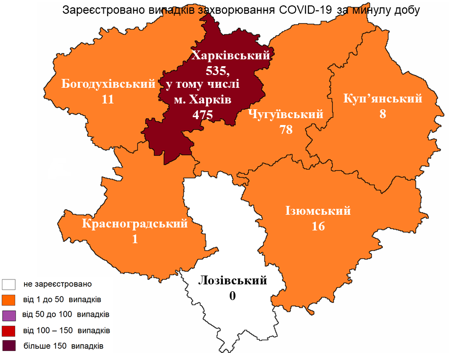 Як повідомили в Харківському обласному центрі контролю і профілактики хвороб, у регіоні виявили 649 нових хворих на коронавірус. Більша частина з них – 535 – жителі Харківського району (475 – міста Харкова).