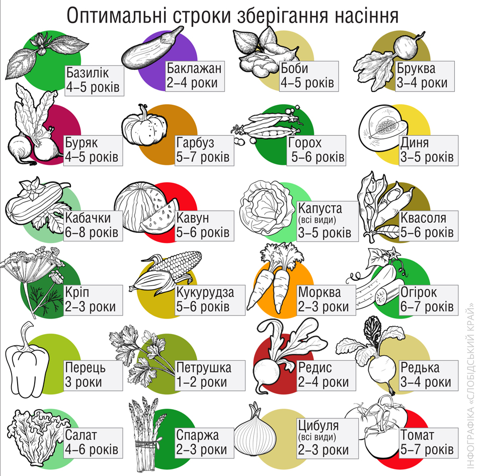 В огірків, капусти та гарбуза «активність» насіння зменшується незначно. А ось насіння томатів, якщо правильно його зберігати, не зменшує схожості до 6–8 років.