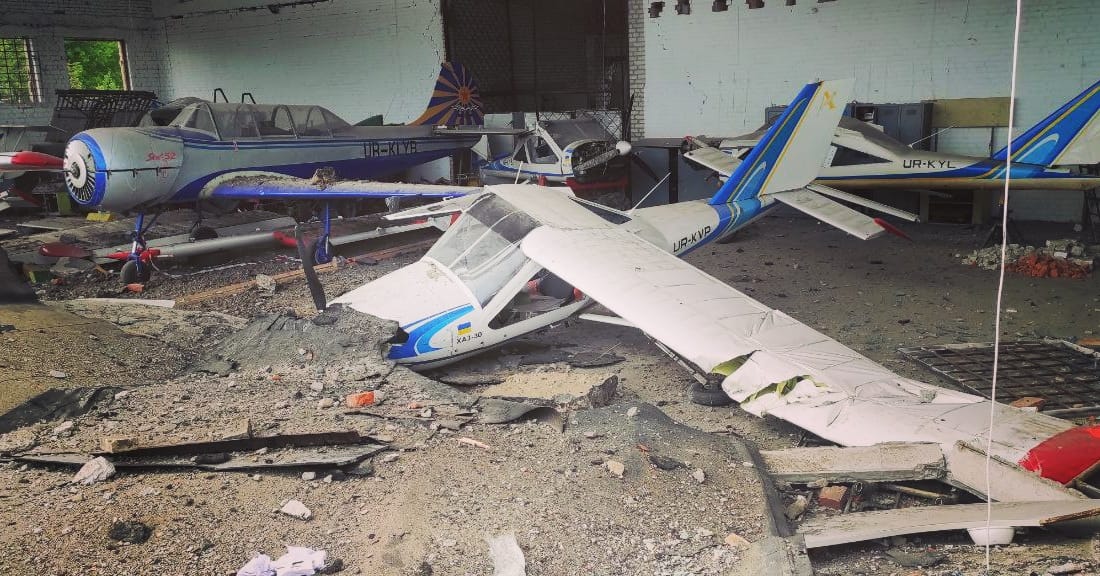 У результаті ракетних ударів було повністю зруйновано найбільший і найстаріший ангар, побудований ще в 60-х роках минулого століття. Ангару, який знаходився поруч, також більше немає. Літаки, які піднімалися в небо в ознайомлювальні, туристичні та навчальні польоти і використовувалися приватними пілотами для повітряних мандрів, знищені.